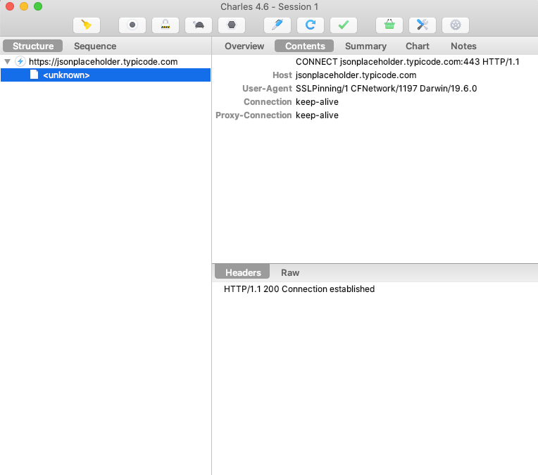 Now, I changed the code and now I am making the request with SSL Pinning. This time Charles can not trace the call and that proves that my SSL Pinning works fine.