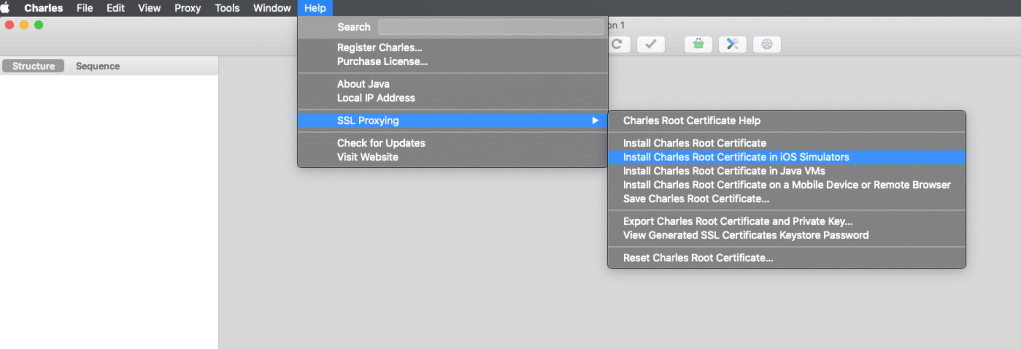 2- Install Charles Root Certificate into iOS Simulator since we will run our application in iOS Simulator. (Do this when your favorite iOS Simulator is open.)